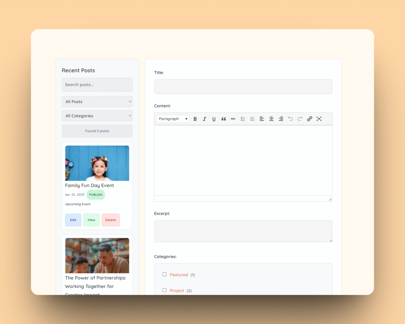 - Support for categories and tags, allowing users to organize their posts effectively.