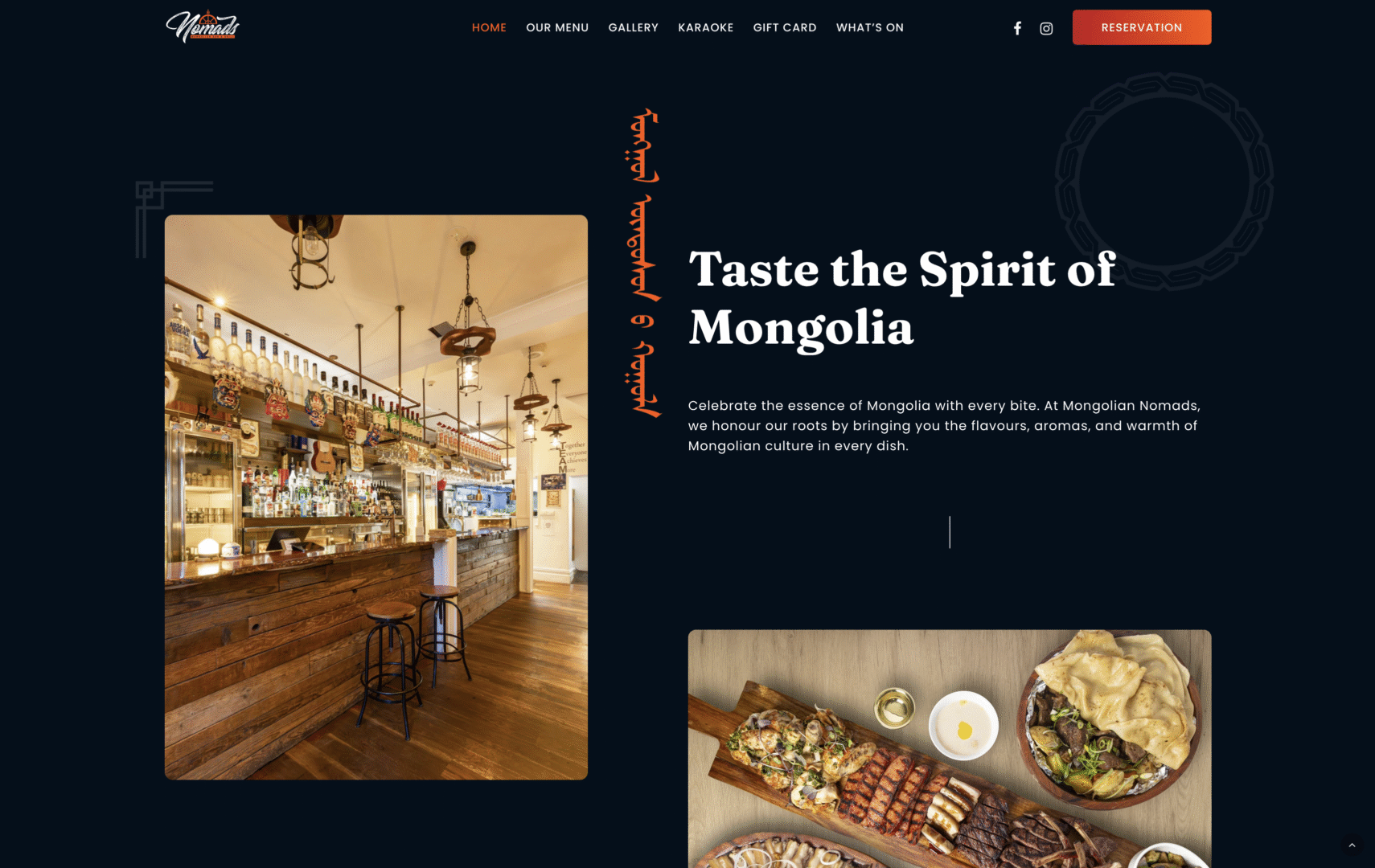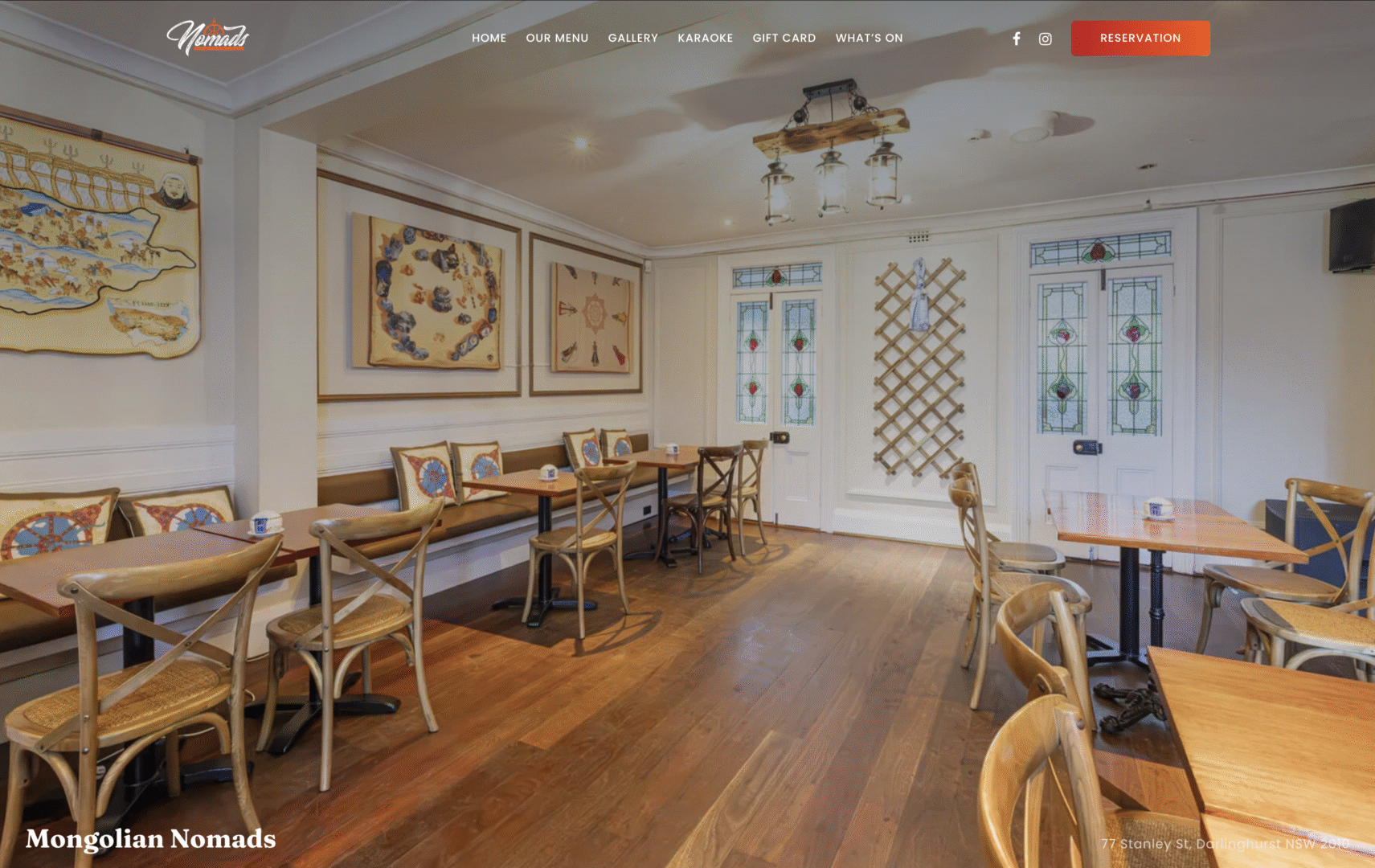 As Sydney’s largest Mongolian bar and grill, Nomads offers an authentic fusion of traditional Mongolian cuisine and contemporary dining culture. The official website was carefully designed and developed to capture the restaurant’s unique identity, elevate its digital presence, and streamline customer engagement.