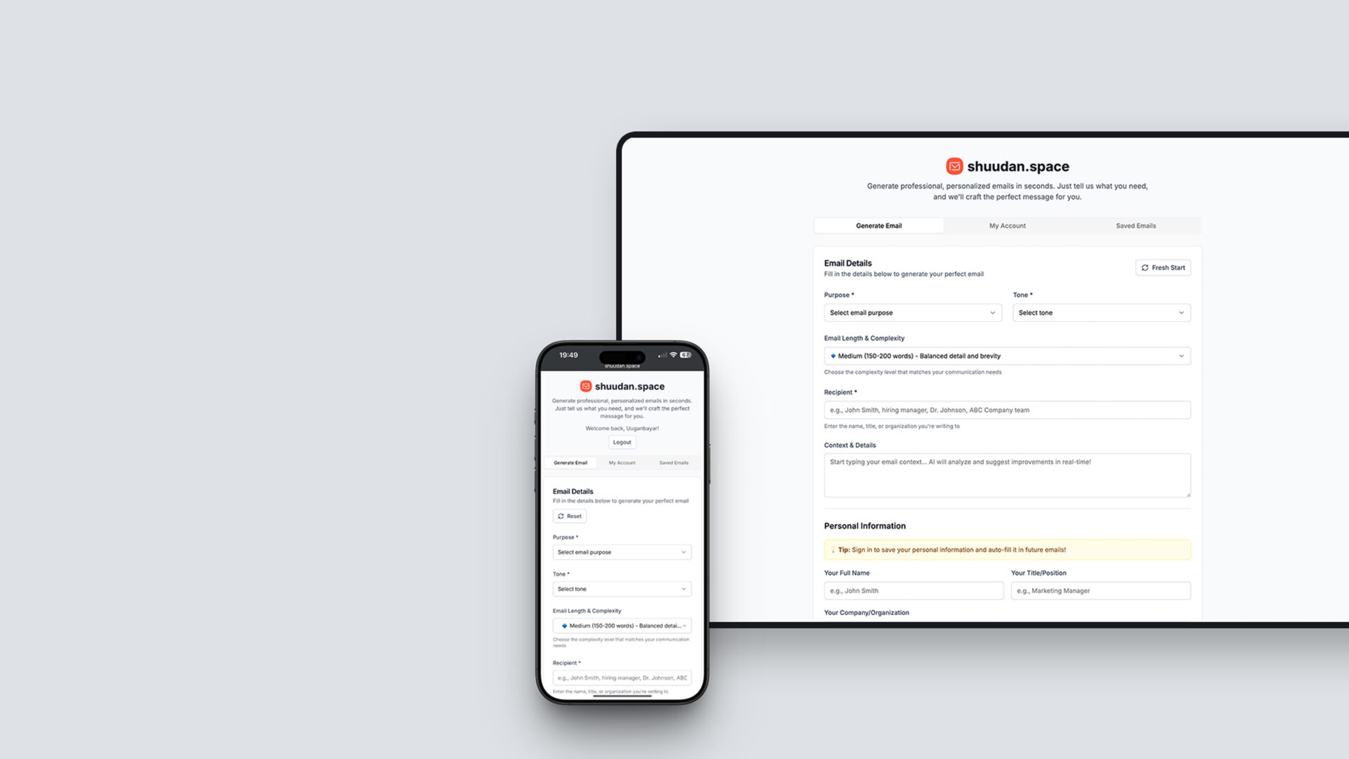 Shuudan.space is a multilingual AI-based web application designed to help users write, edit, and enhance emails more effectively. The platform serves as a smart email assistant that combines natural language understanding with productivity-focused features — ideal for personal, business, and customer communication.
